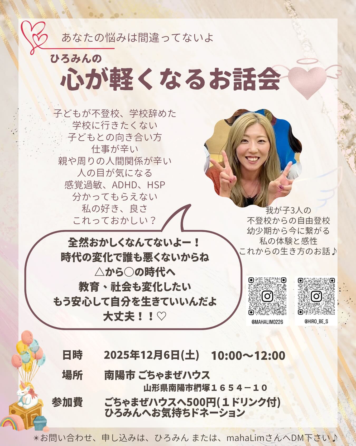 心が軽くなるお話会をごちゃまぜハウスで開催します!
